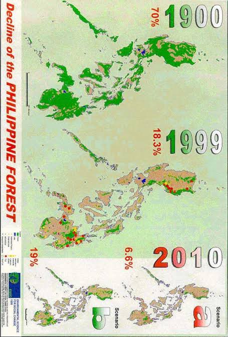 The Philippines is one of the most severely deforested countries in the tropics and most deforestation has happened in the last 40 years. Estimates place forest cover in the Philippines in the year 1900 at 21 million hectares, covering 70 % of the total land area. By 1999, forests covered 5.5 million hectares; only 800,000 hectares of this was primary forest. As illegal logging continues, the remaining forest is endangered.